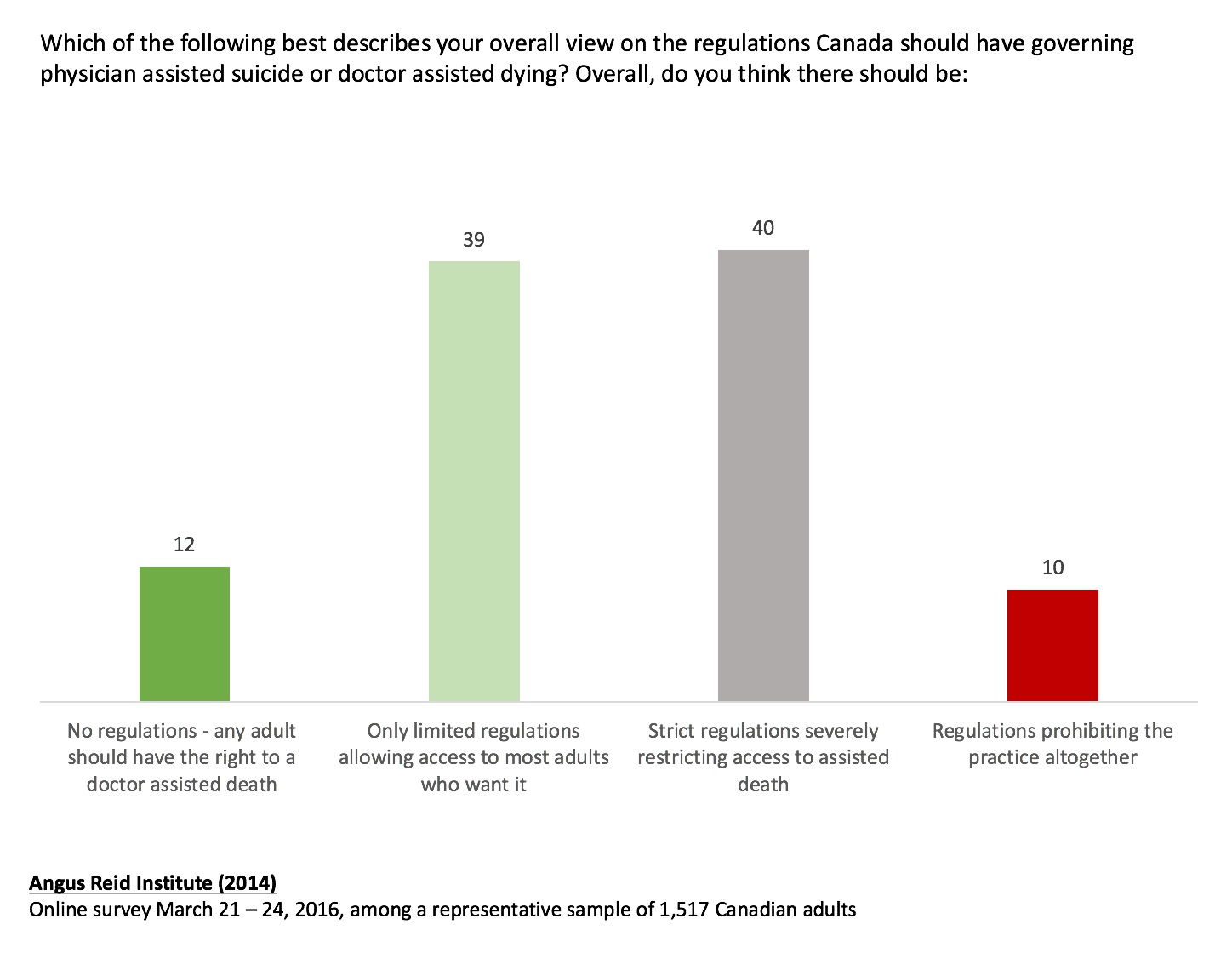 “Canadians clearly from a values-based approach are generally supportive of allowing assisted dying consistent with the Supreme Court decision but this overstates the true public commitment on this issue”.