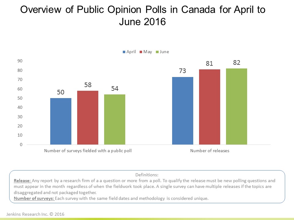 1.4 unique poll releases represents a massive public investment in understanding what Canada as a nation thinks about issues, political combat, brands and lifestyle choices.
